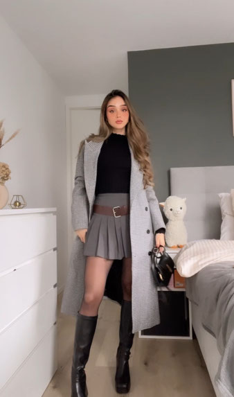 The bag, turtleneck sweater and skirt are sold out so I've linked a replacement. The belt is from a skirt I got from Shein (I have linked it).