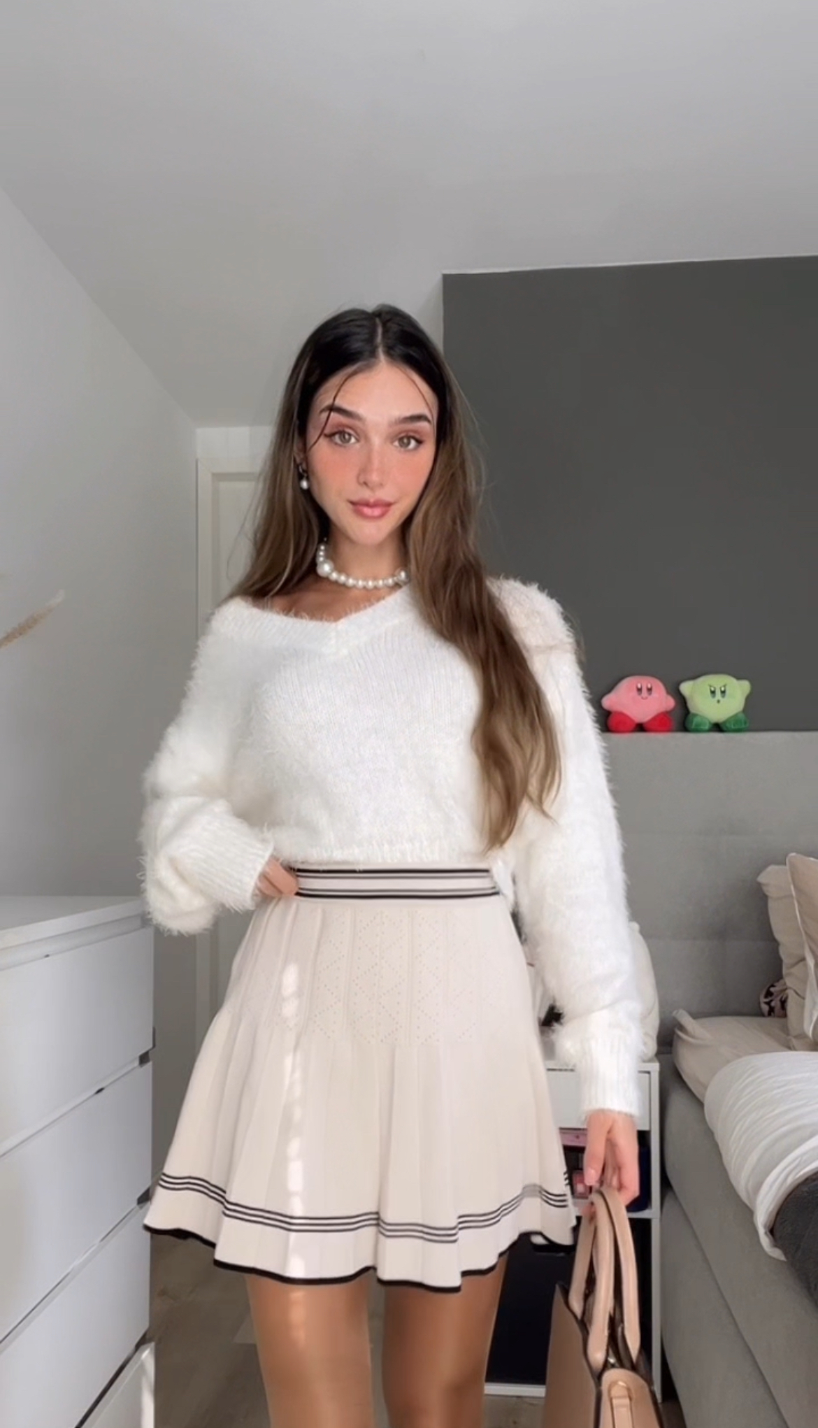 Items that are sold out for which I've linked a replacement: pink bag outfit 1, sweater outfit 3, skirt & sweater outfit 4.
